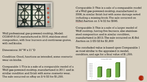 Here is an example of how an appraised piece should be presented. Along with this information, we provide an addendum with documentation substantiating every comparable sale researched: