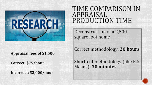 The take-away? Take a look at the numbers, which tell the story of why an appraiser might use this short-cut approach and avoid the time-consuming process of researching comparable sales and capturing the data accurately.